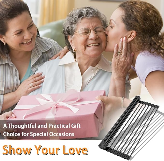- Space Saving & Easy Cleaning: Multipurpose rollable over sink dish drying rack for kitchen does not require any assembly, just roll it up to easily place in limited space like under the sink when not needed, then to keep your kitchen neat always. The sink rack can free up much more counter space than traditional dish drainer. The soft silicone just need to wipe down with one piece cloth. A great addition to kitchen accessories and apartment essentials. It will be a warm gift for new home.