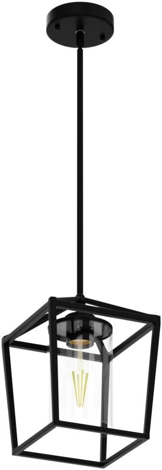 1 Pack Black Pendant Light Fixture Farmhouse Iron Cage Metal Pendant Light Lantern Hanging Light Fixtures with Clear Glass Shade for Kitchen Island, Dining Room, Hallway,Entryway1