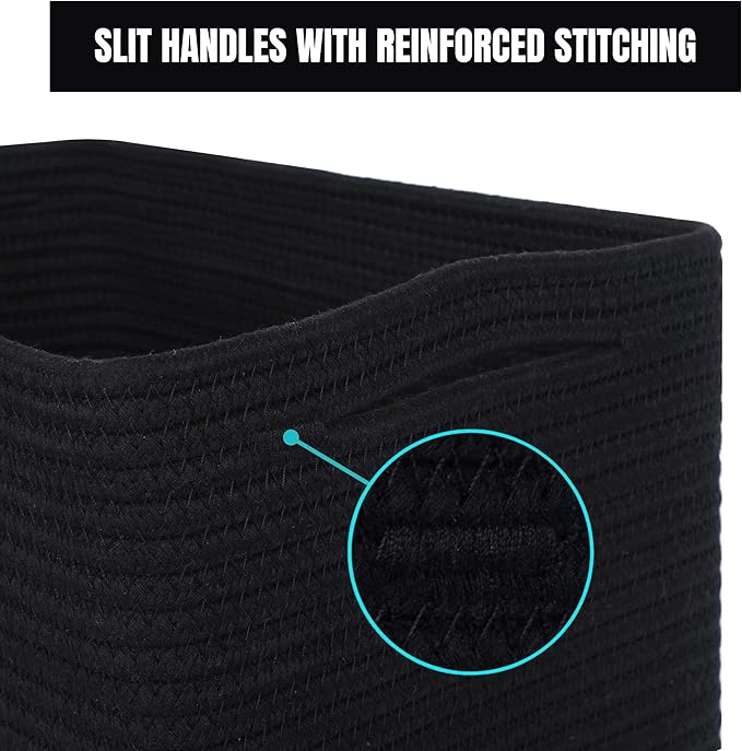 MINTWOOD Design 3-Pack Storage Baskets for Shelves, Playroom and Classroom, Book Basket, Decorative Storage Cube Bins, Woven Closet Organizers, Pantry and Shoe Organizer, Full Black