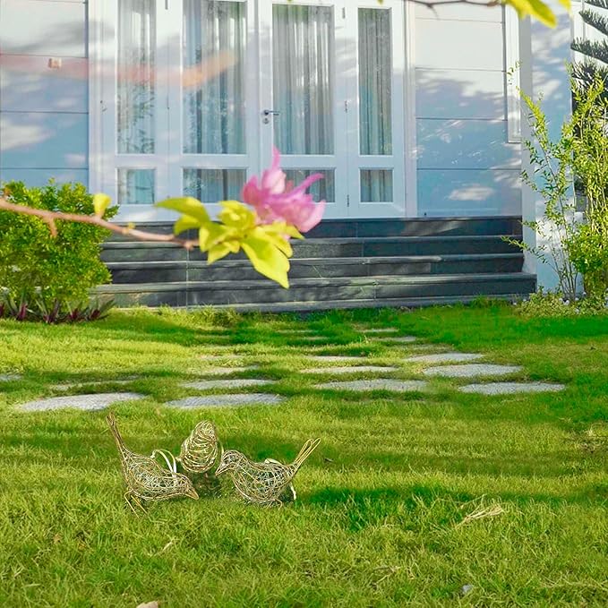 - [Luxury Metallic Accent] Handcrafted with gleaming gold-finish iron wires, these contemporary bird sculptures add refined elegance to modern farmhouse or glam interiors.