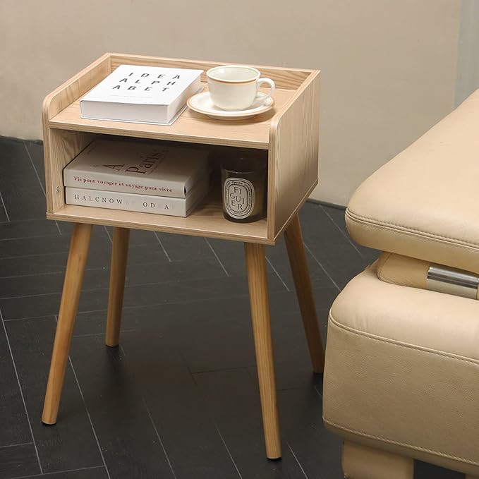 MaxSmeo Nightstand, Mid Century Modern Side Table Bedroom with Storage, Small End Bedside Table with Solid Wood Legs for Living Room, Office Small Spaces (Natural)