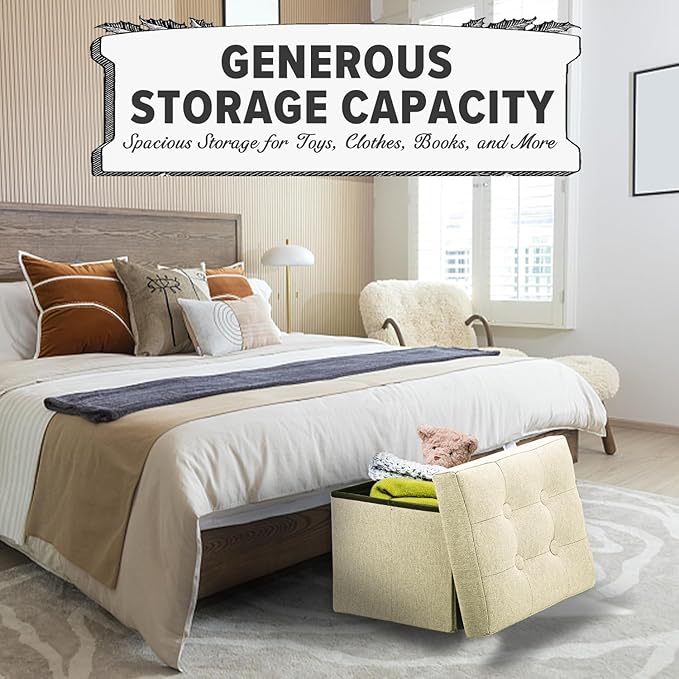 - DECORATIVE MULTI-PURPOSE LINEN OTTOMAN β Our linen fabric storage ottoman are a stylish, practical alternative to other boring storage solutions. Not only will our ottoman help you get organized, the pure design, sophisticated shape, and neutral colors will complement any decor in any room for all your storage needs. Use them in the playroom, bedroom, living room, & more