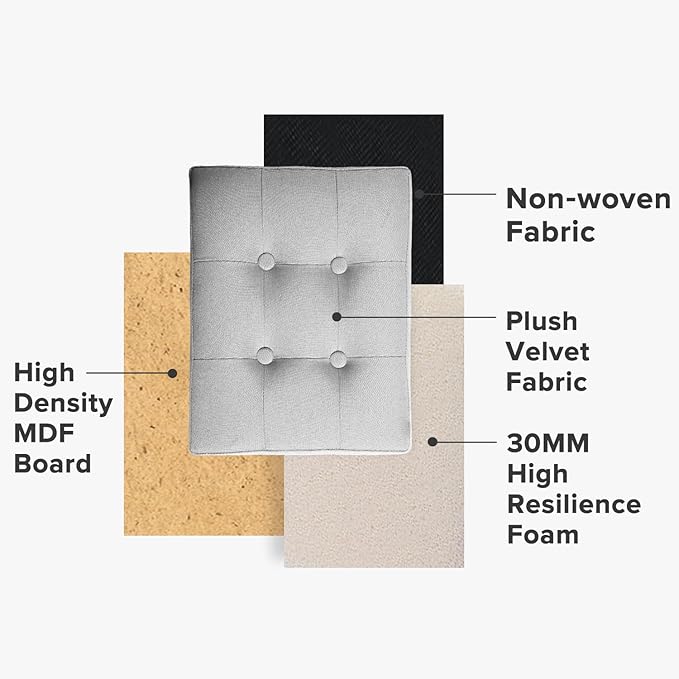 - PURE DESIGN β Our button are integrated with the lid in a seamless manner. Clean and tidy look, but most importantly, sturdy and functional. Crafted with high quality MDF board, high-density sponge make the stool more comfortable and breathable.they make for a lovely and practical gift to friends and family for birthdays, housewarmings, or any other gift-giving occasion
