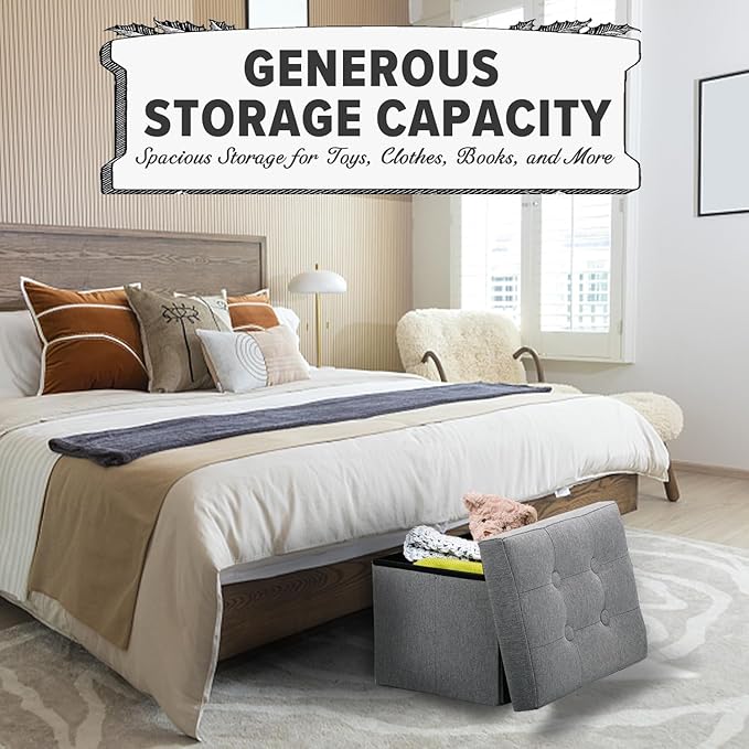 - DECORATIVE MULTI-PURPOSE LINEN OTTOMAN β Our linen fabric storage ottoman are a stylish, practical alternative to other boring storage solutions. Not only will our ottoman help you get organized, the pure design, sophisticated shape, and neutral colors will complement any decor in any room for all your storage needs. Use them in the playroom, bedroom, living room, & more