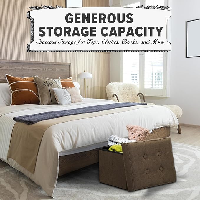 - DECORATIVE MULTI-PURPOSE LINEN OTTOMAN – Our linen fabric storage ottoman are a stylish, practical alternative to other boring storage solutions. Not only will our ottoman help you get organized, the pure design, sophisticated shape, and neutral colors will complement any decor in any room for all your storage needs. Use them in the playroom, bedroom, living room, & more