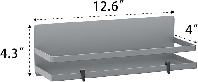 - 【QUALITY DESIGN】The magnetic shelves made of high quality thick steel plate for durability.Super strong magnet on the whole back, paint treatment, will not rust. Matte finish on the surface, safe and healthy. Smooth rounded edge design is safe and comfortable to touch.The shelf can carry up to 10 pounds.