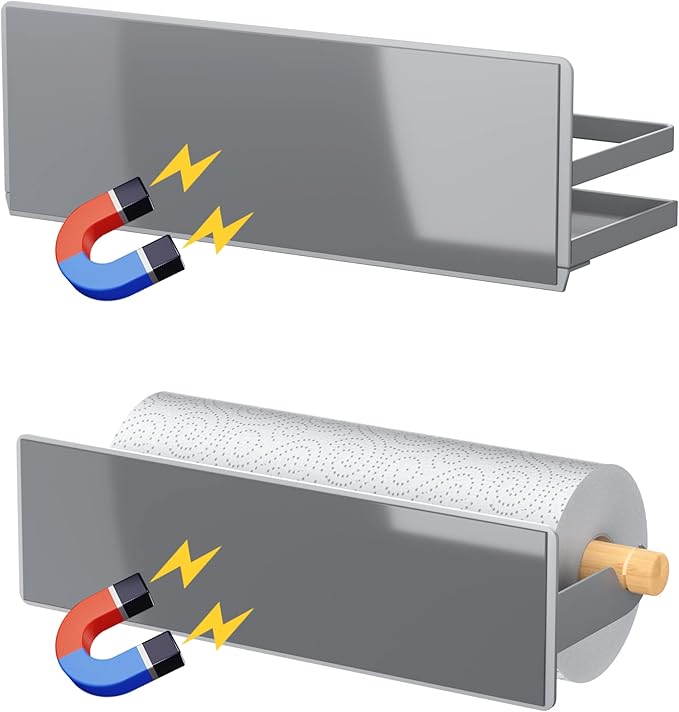 Magnetic Spice Rack Moveable Magnetic Shelf Organizer with Paper Towel Holder Kitchen Refrigerator Seasoning Storage Rack Fridge Magnet Organizer,Grey,3 Packs