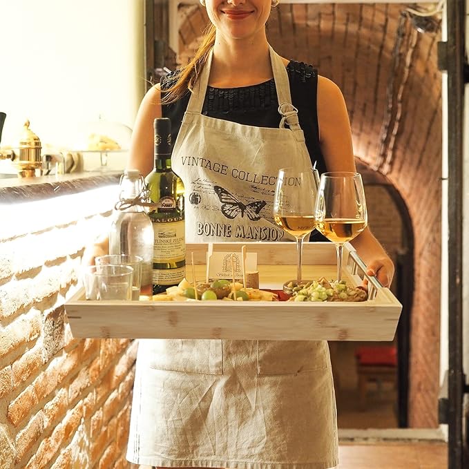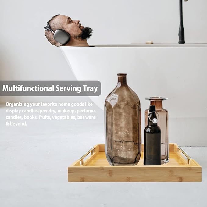 - Versatile & Stylish Tray- Ideal for eating, working, decorating and storing, this multi-functional rectangular bamboo serving tray is either serving small food & drink or organizing your favorite home goods like display candles, jewelry, makeup, perfume, candies, books, fruits, vegetables, bar ware & beyond.