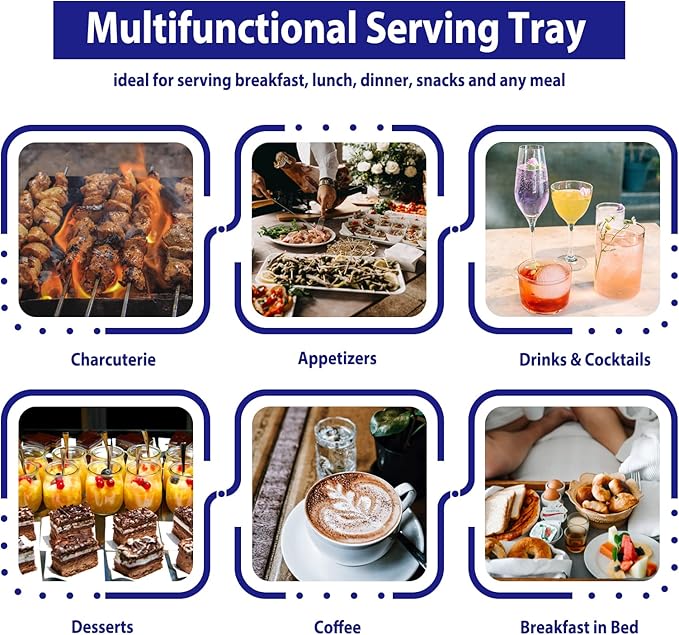 - Multifunctional Serving Tray- This patio serving tray is ideal for serving breakfast, lunch, dinner, snacks and any meal. Apart from everyday use, this food tray can also be used during family activities, parties and get to gathers. It is equally useful in commercial setups and restaurants.
