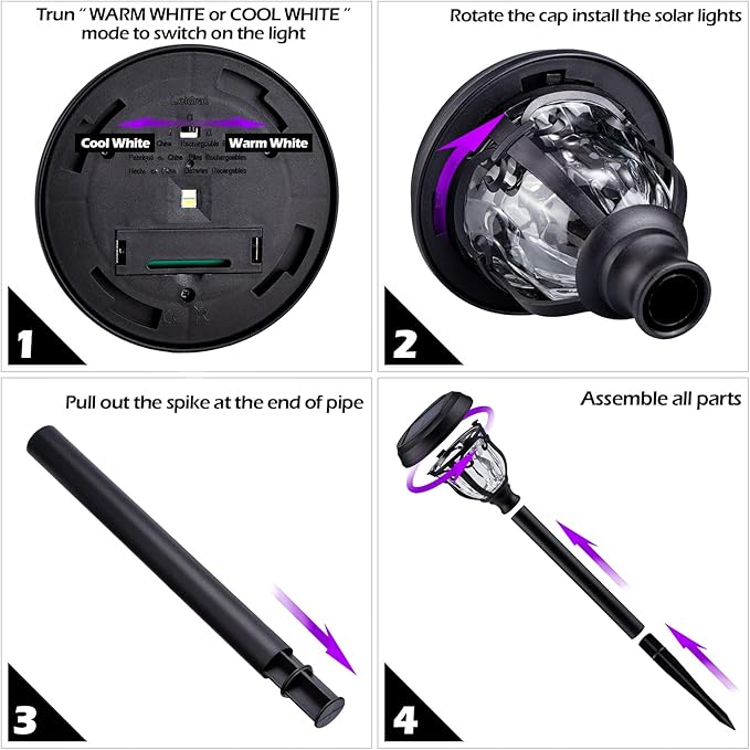 - [2 Color Lighting Modes] LeiDrail solar powered garden lights have 2 light modes, let you no longer be limited to one color temperature. According to different usage needs and different environments, you can adjust the switch to choose the appropriate light color.