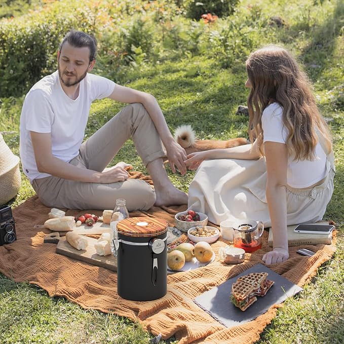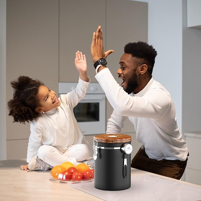 - 【 Date tracking and airtightness 】 The coffee canister is designed with a lock, and the wood grain colored lid is equipped with a silicone gasket. The top of the lid has a date tracking wheel. You can set the shelf life when loading coffee, and the next time you open it, you will know how long it will be stored.