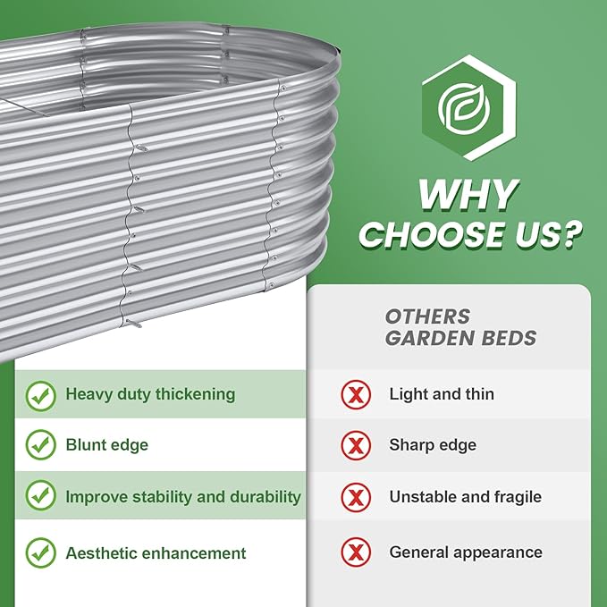 - Upgraded quality and structure: raised garden beds outdoor are made of Q195 galvanized metal sheet, double-layer anti-corrosion galvanizing and oval structure design, which is more beautiful, can withstand greater pressure at the interface, is not easy to loose, and the interface will not Deformed and can be reused for many years.