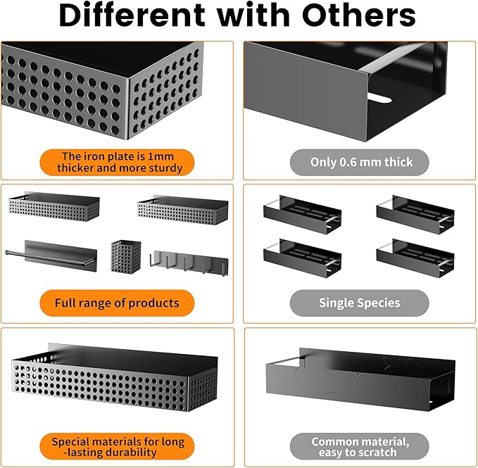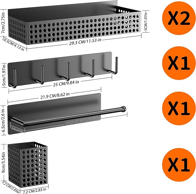 - 【Humanized Design】: The magnetic refrigerator shelf has five individual units, so you can arrange them according to your needs to suit your different spaces. It comes with a 1.97-inch side guardrail to protect items from falling, keeping the kitchen safe. Black magnetic shelves coordinate with any style of home decor and help to organize kitchen areas.