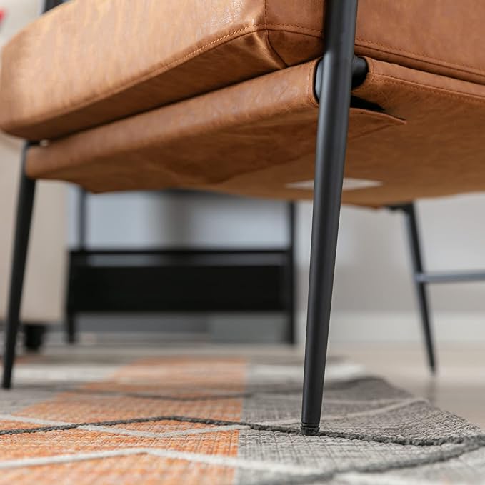 Mid-Century Accent Chair, Soft Armchair PU Leather Lounge Chair with Black Metal Legs, Upholstered Leisure Chair for Living Room Bedroom Reception Room, 1PC, Brown
