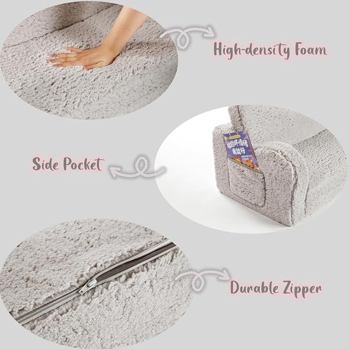Kids Extra Wide Chairs for Toddler, 2-in-1 Toddler Soft Sherpa Couch Fold Out, Convertible Sofa to Lounger for Girls and Boys, Grey