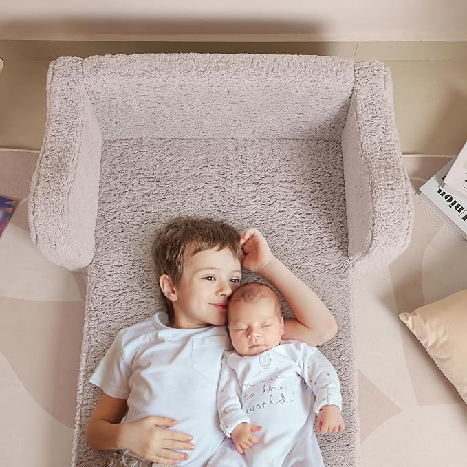 - Kids Sherpa Chair Safety and Reliability: The kids sofa chair is made of durable snuggly-soft polyester Sherpa and is filled with premium foam to support kid's body. The sofa is designed with safety in mind, as there are no sharp corners or hard edges.