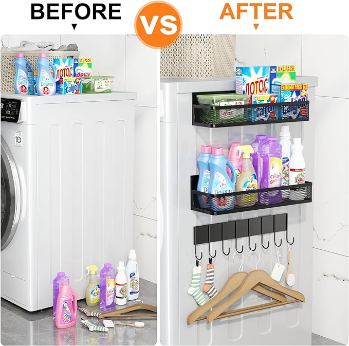 - Multi-Use Magnetic shelves: Can be used on all magnetic surfaces of your home and kitchen, such as the side wall of your refrigerator to hold spices, oils, utensils, plates, mugs, towels or other essentials. Our moveable magnetic fridge organizer can also be used on the side of an oven, microwave or washing machine for storage.