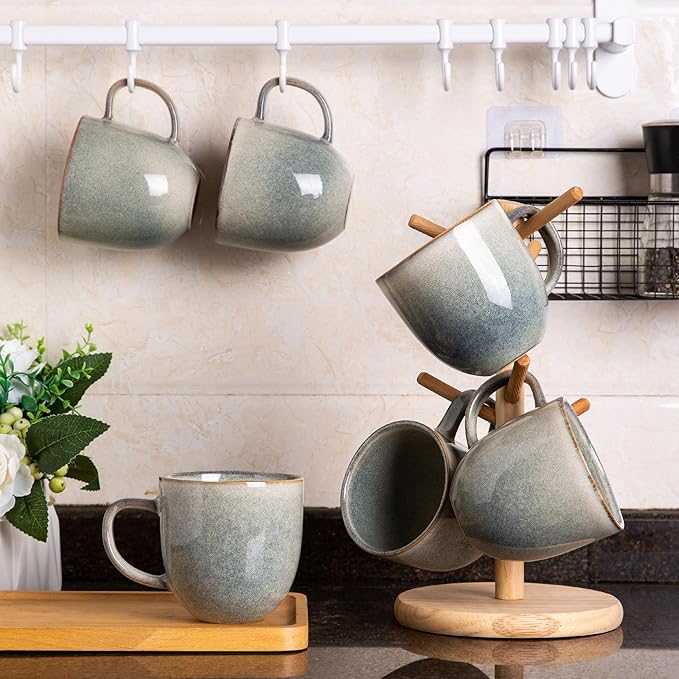 - UNIQUE DESIGN: Our mugs feature a hand-finished reactive glaze that creates a beautiful, one-of-a-kind look. The color variations add to the charm and character of each piece, making them a stunning addition to any kitchen or dining room.