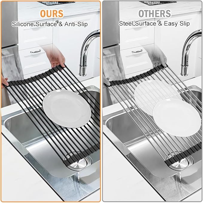 - Anti-Slip and Heat Resistant: Its Anti-slip silicone surface ensures dishes stay securely in place, withstands heat up to 400°F (204°C), making it an excellent trivet for conveniently supporting meals fresh out of the oven. Highly outperforms dish drying racks with stainless steel surface。