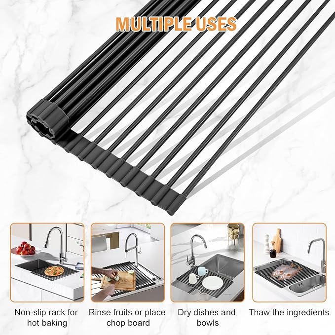 - Multi-purpose Drying Rack: Serves as a drying rack station for pans, glasses, cutlery, cookware, mugs, and more. It's also an above-sink colander, trivet, kitchen caddy, cooling rack, and sink cover. Keep your kitchen sink area tidy and efficient.
