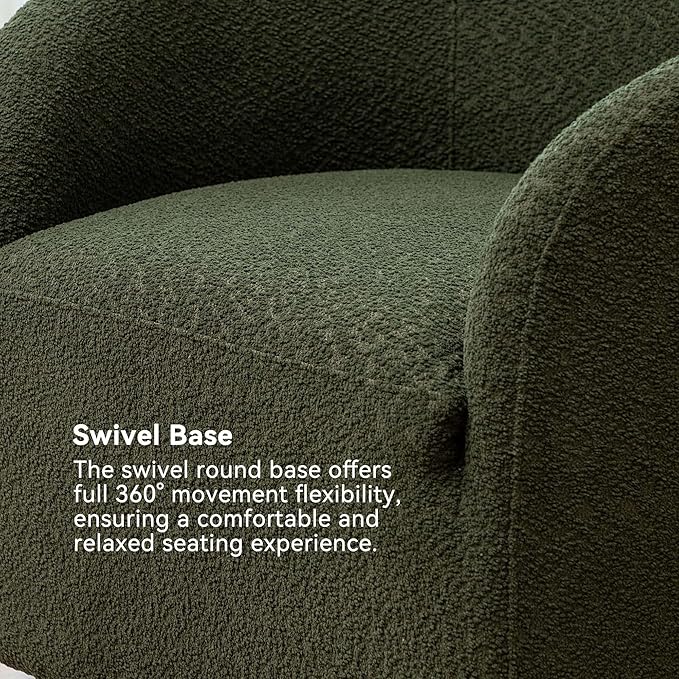 - Sturdy Base & Frame: The boucle chair's 360-degree swivel metal base allows for versatile and flexible seating options, and the frame of the swivel chair is made of sturdy solid wood. You can easily turn the chair to face different directions or turn towards different parts of the room without getting up.