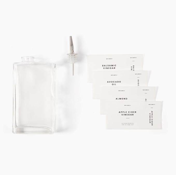 - Labels Free of Oil Stains: Each Oil and Vinegar Dispenser Set Has 42 Complimentary Waterproof Stain-free Labels. The Labels Are Designed To Be Reused for Multiple Times and Will Not Leave any Residue upon Peeling.