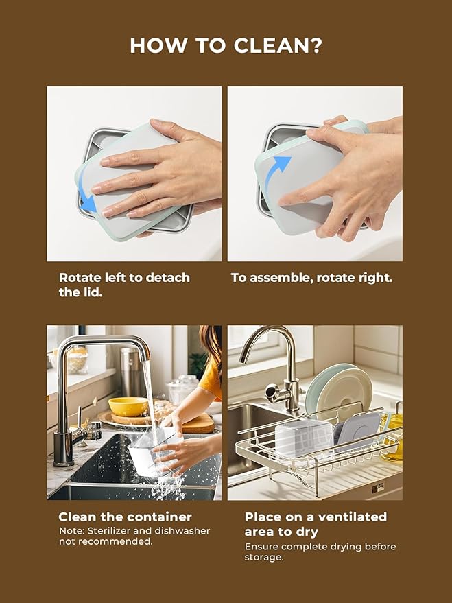 - Easy to Clean: Disassemble and clean your airtight food storage containers with lids effortlessly. Lids can be taken apart for thorough cleaning.