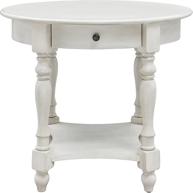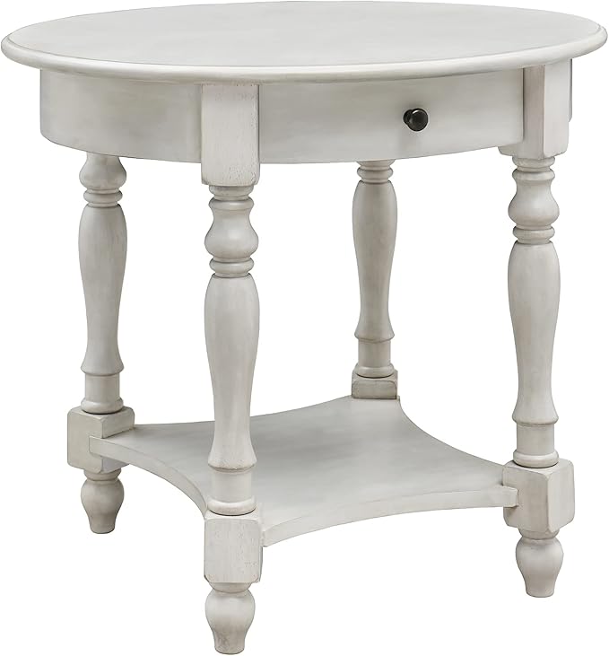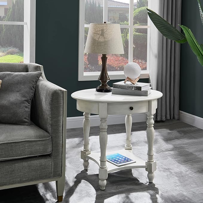 - Elegant Vintage Charm End Table: The oval end table has a sculptural form that impresses with its stately, grandeur appeal. Elegant Vintage Style adds noble and elegant temperament.It is not an end table a home decoration artwork.The sofa side table is made of Rubber wood and Birch sheet,wrapped by antique white finished.