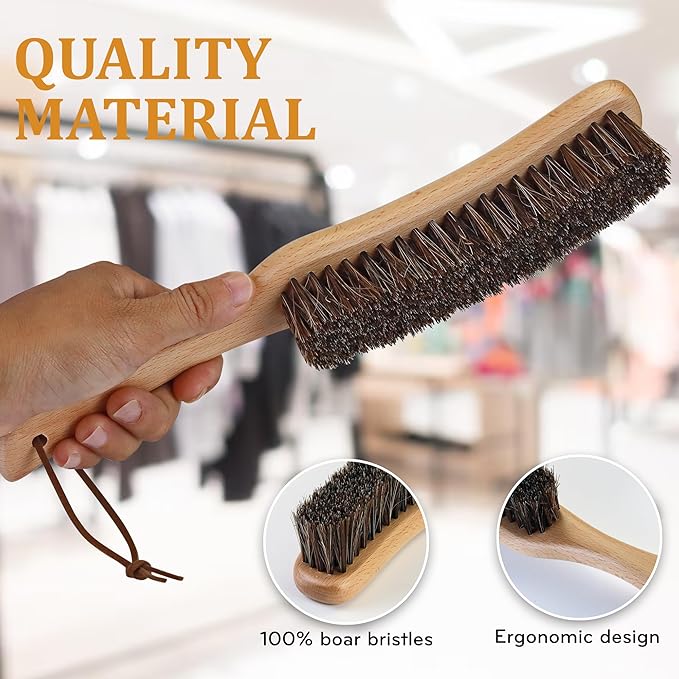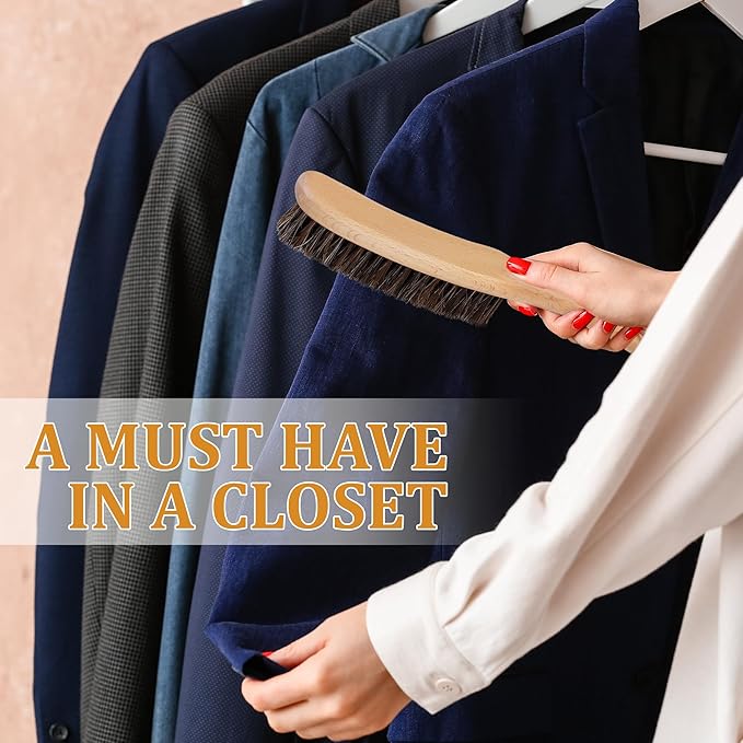 Lint Brush for Clothes with 100% Soft Horse Hair Bristle, Large Beech Wood Handle, Lint Remover for Hat, Pet Hair, Suits, Cashmere, Wool, Velvet, Suede, Shoe