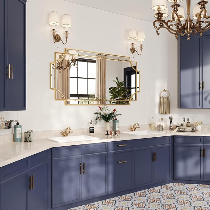 - UNTIQUE DESIGN. If your want some intricacies/interest to the pattern - not just a simple round or rectangle, this mirror will definitely be your perfect choice. Its sophisticated cutout corner accents along the inner and outer edges of the frame complete the look with added decorative detail. It will be a beautiful addition to any wall and an essential element in your home decor.