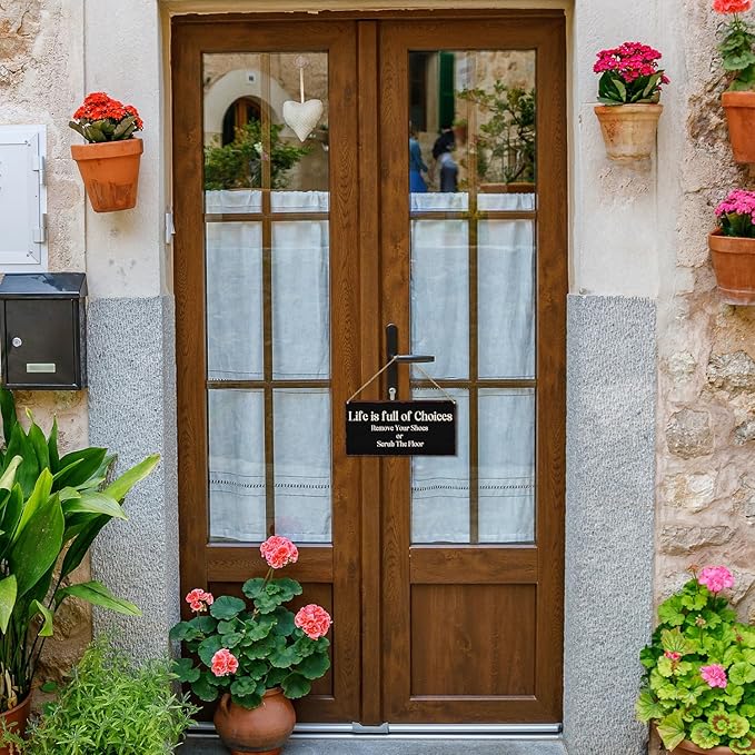 Life Is Full Of Choices Remove Your Shoes Or Scrub The Floor Wooden Hanging Sign Plaque, Wall Decor Sign With Inspirational Quotes,Rustic Wood Sign Wall Art for Home Living Dining Room Farmhouse - A30