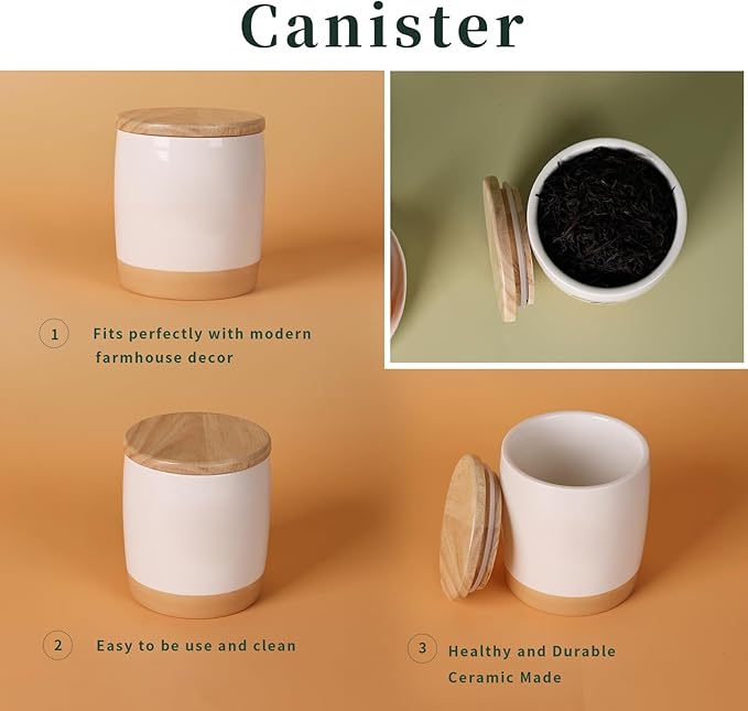 - Advantages of Porcelain:This Food Storage Jar is made of ceramic material, which is easier to clean than other materials. Note: Wooden covers must be hand washed