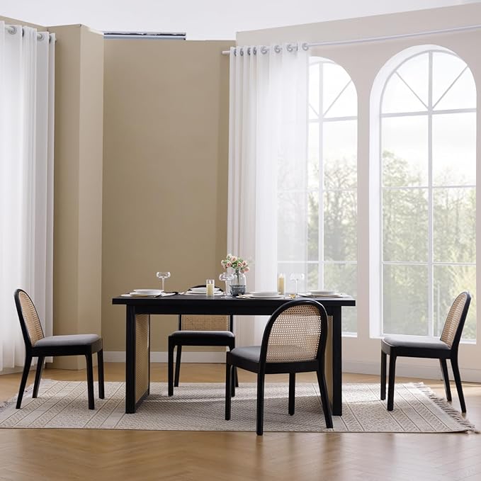 - Mid Century Style: Arched rattan backrest add mid century country style to your home, create relaxed elegance for any space. The square padded seat cushion is linen or sherpa upholstered, adding modern appeal to your kitchen.