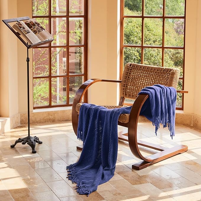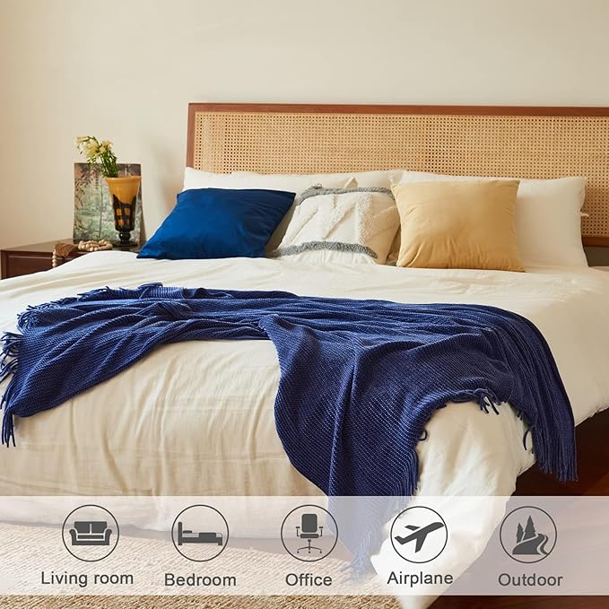 lifein Throw Blanket for Couch, Soft Boho Decor Bed Throw,Cozy Blue Chenille Knitted Small Farmhouse Lightweight Throw for Spring(Blue,60 * 80")