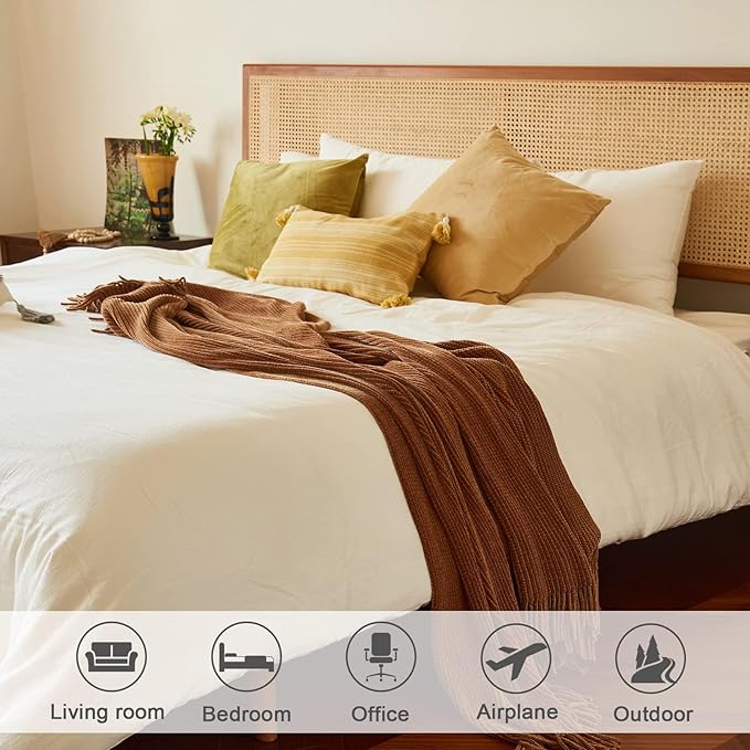 lifein Throw Blanket for Couch, Soft Boho Decor Bed Throw,Cozy Brown Knitted Chenille Small Farmhouse Lightweight Throw for Spring(Golden Brown,60 * 80")