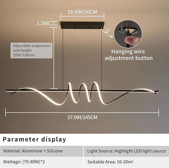 - LED Light Source : - The ceiling dining room light consists of 2853 high quality lamp beads, high brightness, anti-flicker, eye protection, energy saving and environmental protection, average service life of 50,000 hours, no UV and IR radiation, eye protection. Comfortable to use.
