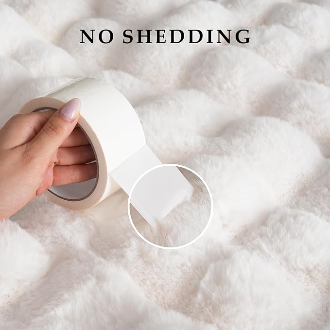 - Luxury Double-Sided Faux Fur: Unlike regular faux fur blankets, ours features double-sided faux rabbit fur. One side showcases a 3D bubble faux fur with a full and dimensional bubble texture, while the other side offers smooth and ultra-soft faux fur. Compared to regular crystal velvet, it's more static-resistant, softer to the touch, and warmer against the skin.
