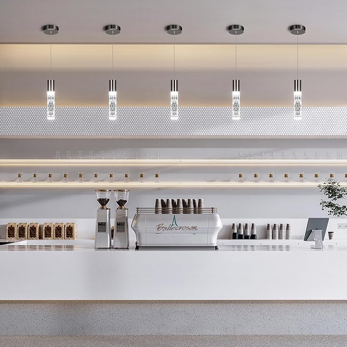 - 【Simple Modern style】:Modern black pendant light stainless steel sconces and cylindrical crystal bubble lamp posts will add more luxury, noble, and artistic atmosphere to your home, let your island light add a high-end atmosphere to your kitchen.