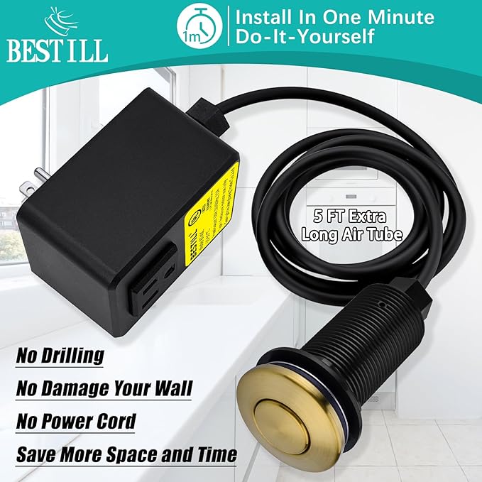 - SAFETY IS OUR FIRST PRORITY - The power module of BESTILL Garbage Disposal Air Switch Kit is UL Certified(NO. E530042), not just the power cord, it's more secure and reliable, without worrying about potential damages or safety risks.