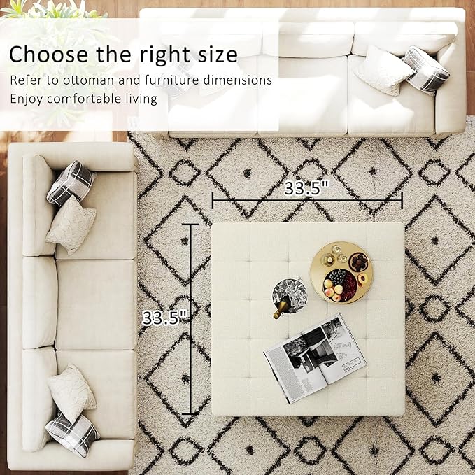 - Ottoman Coffee Table Size:33.5" Wx33.5" Dx18.5" H. Easy to bear 400 pounds