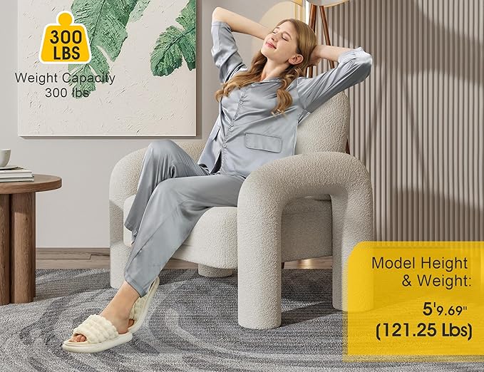 - [Cute Elephant Trunk Armrest Design] The armrests of the accent chair are smooth curved elephant trunk design, and the whole is fully wrapped by soft bag, soft and comfortable. It can fit the posture of the hand when relaxing extremely well. The unique minimalist design is a work of art that brightens up the entire space.