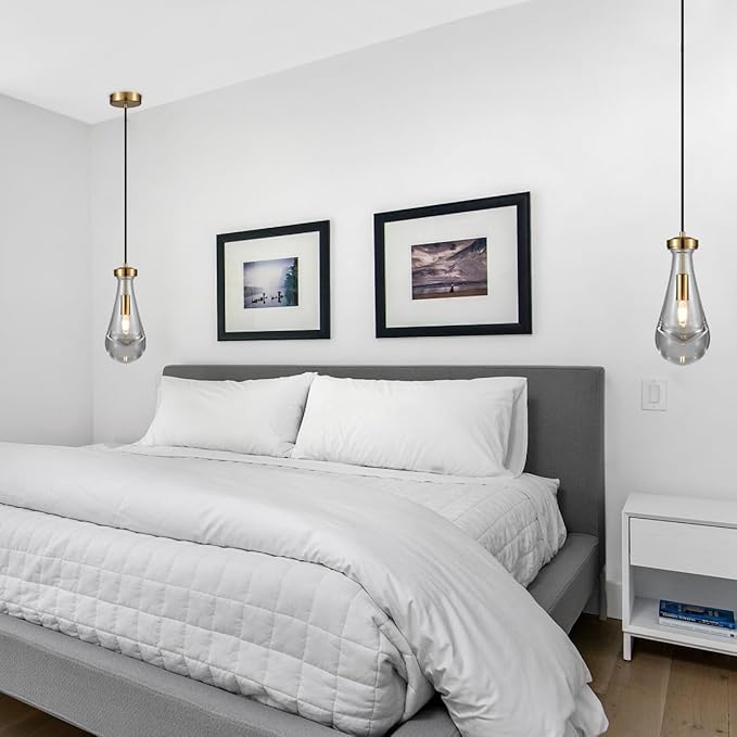 - 【Raindrop Design】This raindrop pendant light features a unique and captivating design that combines modernity with the beauty of nature. The handmade, mouth-blown glass shade resembles raindrops, creating a stunning light effect that enhances any space. Whether you prefer a modern or vintage farmhouse style, these pendant lights effortlessly blend in while illuminating your room with a bright and decorative ambiance.
