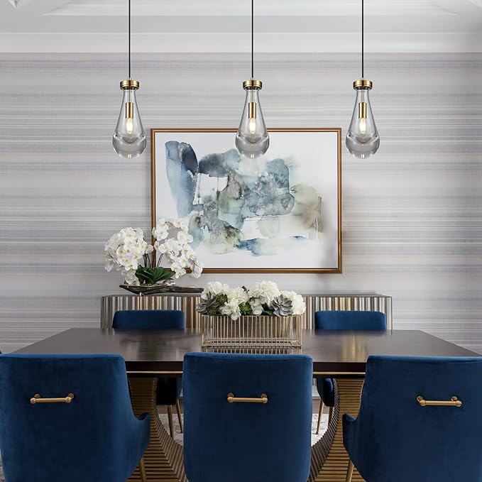 Raindrop Pendant Light Fixtures Set of 3, Brass Glass Pendant Lighting, Teardrops Modern Hanging Light for Entryway Foyer Kitchen Island Dining Living Room Hallway