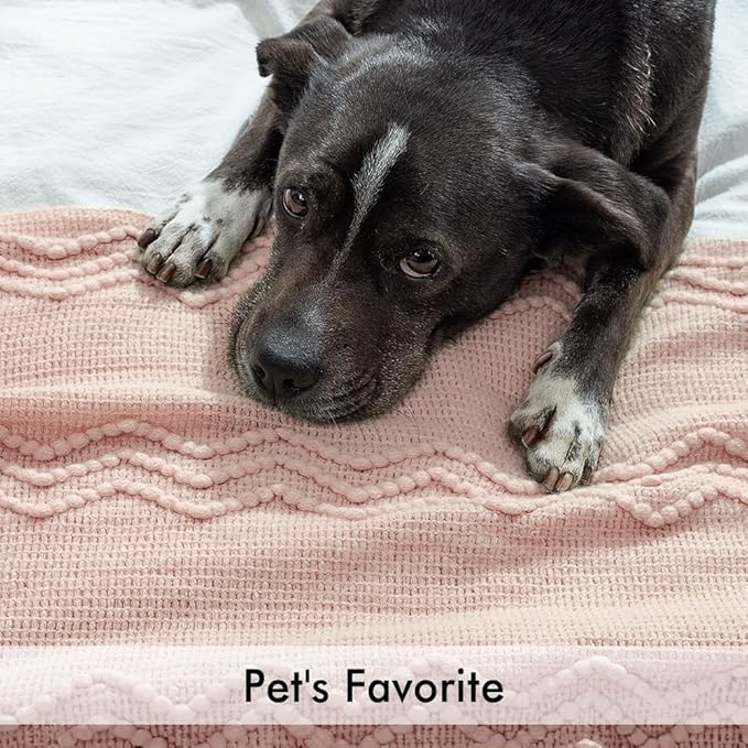 MIULEE Light Pink Knitted Throw Blanket for Couch Bed, Boho Textured Cozy Woven Decorative Farmhouse Blanket with Tassels for Sofa Chair Living Room 50"x60"