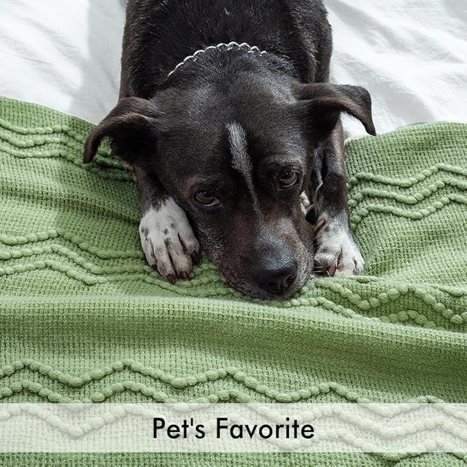 MIULEE Sage Green Knitted Throw Blanket for Couch Textured Spring Knit Blanket with Tassels Cozy Woven Boho Bed Blanket for Sofa Bed Chair Acrylic Wave Pattern 50"x60"