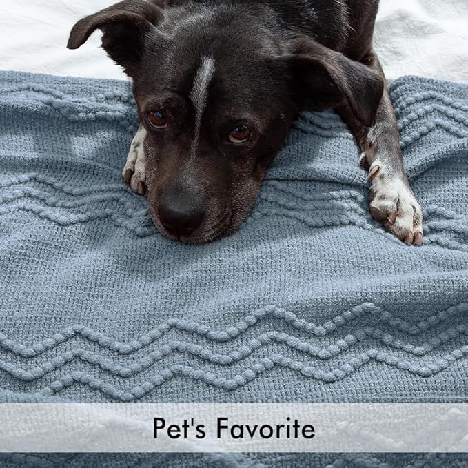 MIULEE Dusty Blue Cozy Knitted Throw Blanket for Couch Textured Knit Blanket with Tassels Woven Acrylic Wave Pattern Boho Blankets for Sofa Bed Chair 50"x60"