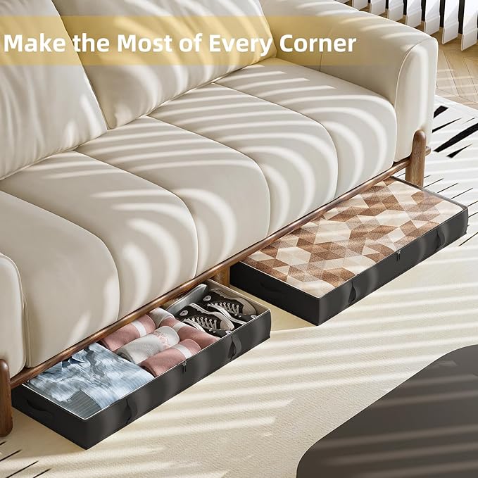 - Your room can be more organized - thanks to our STURDY underbed storage bins, you can place it under the bed, in the closet, on top of the closet, even under the sofa, or any other small spaces in your home. You'll find it so helpful that your home will seem bigger!