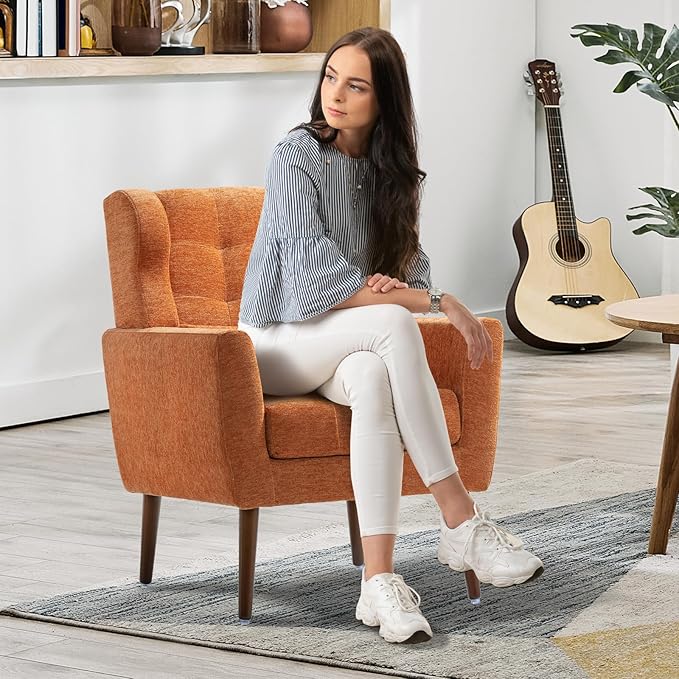 - Easy Assembly Accent Chair: Get a wonderful time with simple assembly! The accent chair is designed to be easily assembled. All parts and instructions are cleverly packed, packed with an illustrated manual to help you assemble it less than 10 minutes.No need any tools.