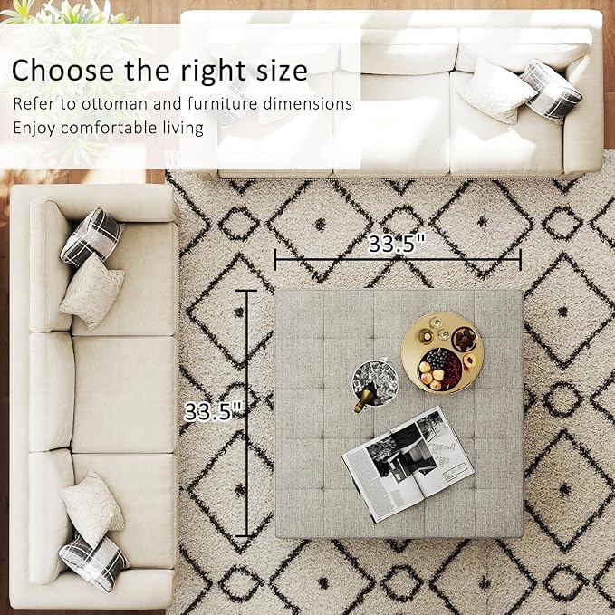 - Ottoman Coffee Table Size:33.5" Wx33.5" Dx18.5" H. Easy to bear 400 pounds