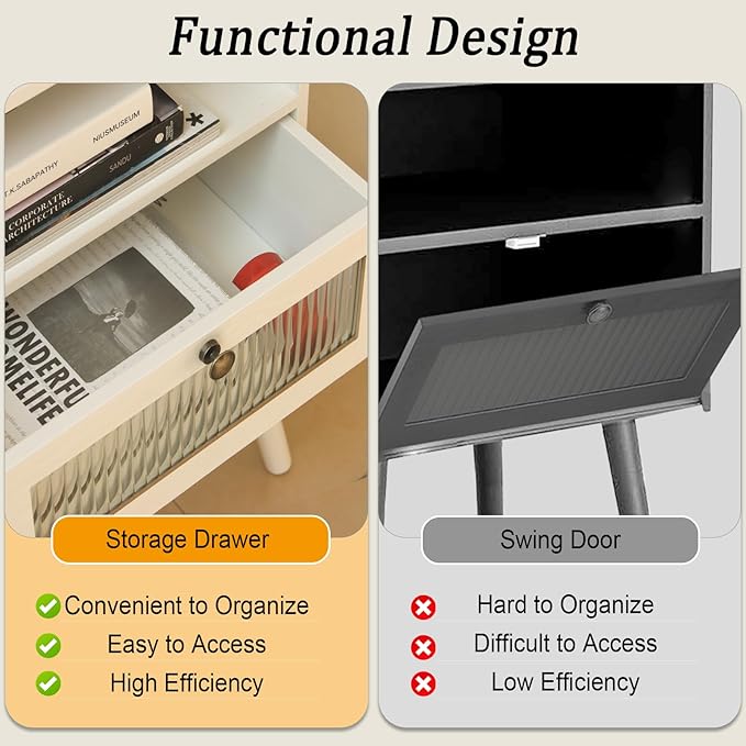- Spacious Storage Space: The 2-tier bedside table features with a storage drawer for private essentials, an open shelf, and a spacious tabletop for books, clocks, cups, and decorative items. Perfect as a nightstand, sofa side table, bedside table with storage, coffee tea table, or end table for the bedroom, or living room to organize items